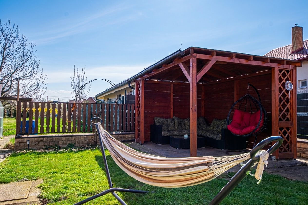 Na pozemku s celkovou výmerou 936 m² sa nachádza aj altánok, ktorý poskytuje priestor na oddych, a samostatná dielňa s garážou, vhodná pre podnikanie, remeselnú činnosť alebo ako skladové zázemie. Dom je napojený na všetky základné inžinierske siete – elektrinu, verejný vodovod, kanalizáciu a plynovod, pričom k dispozícii je aj vlastná studňa.