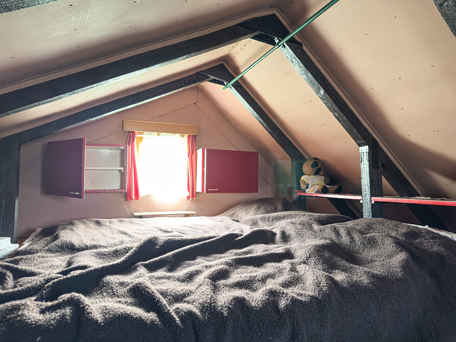 - prízemie slúži ako denná časť, s poschodovou posteľou na spanie,